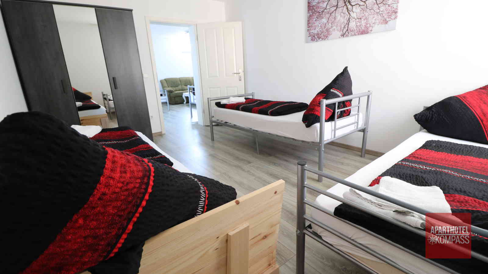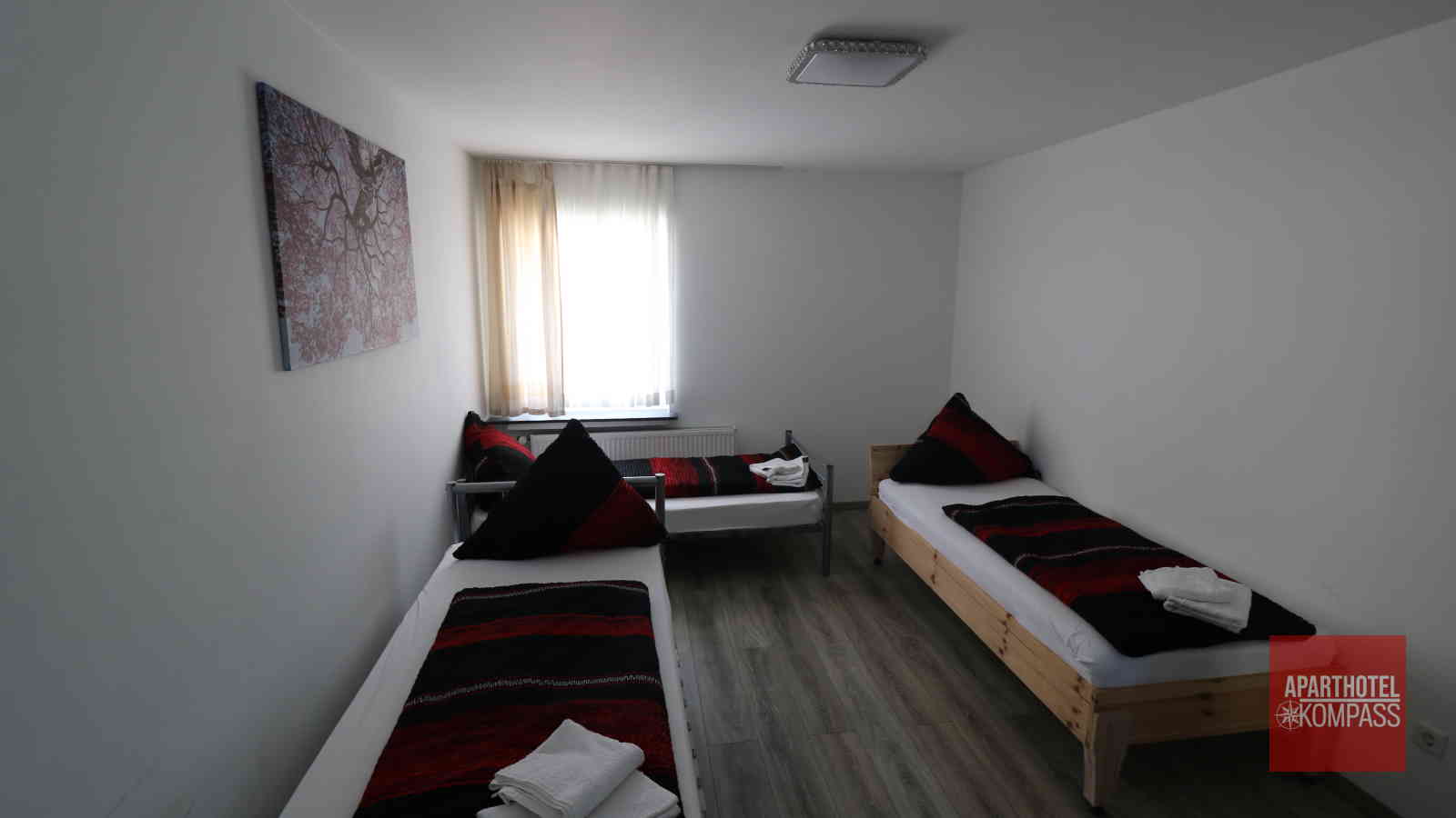 Das Schlafzimmer ist mit 3 Einzelbetten und einem dreitürigen Kleiderschrank ausgestattet.