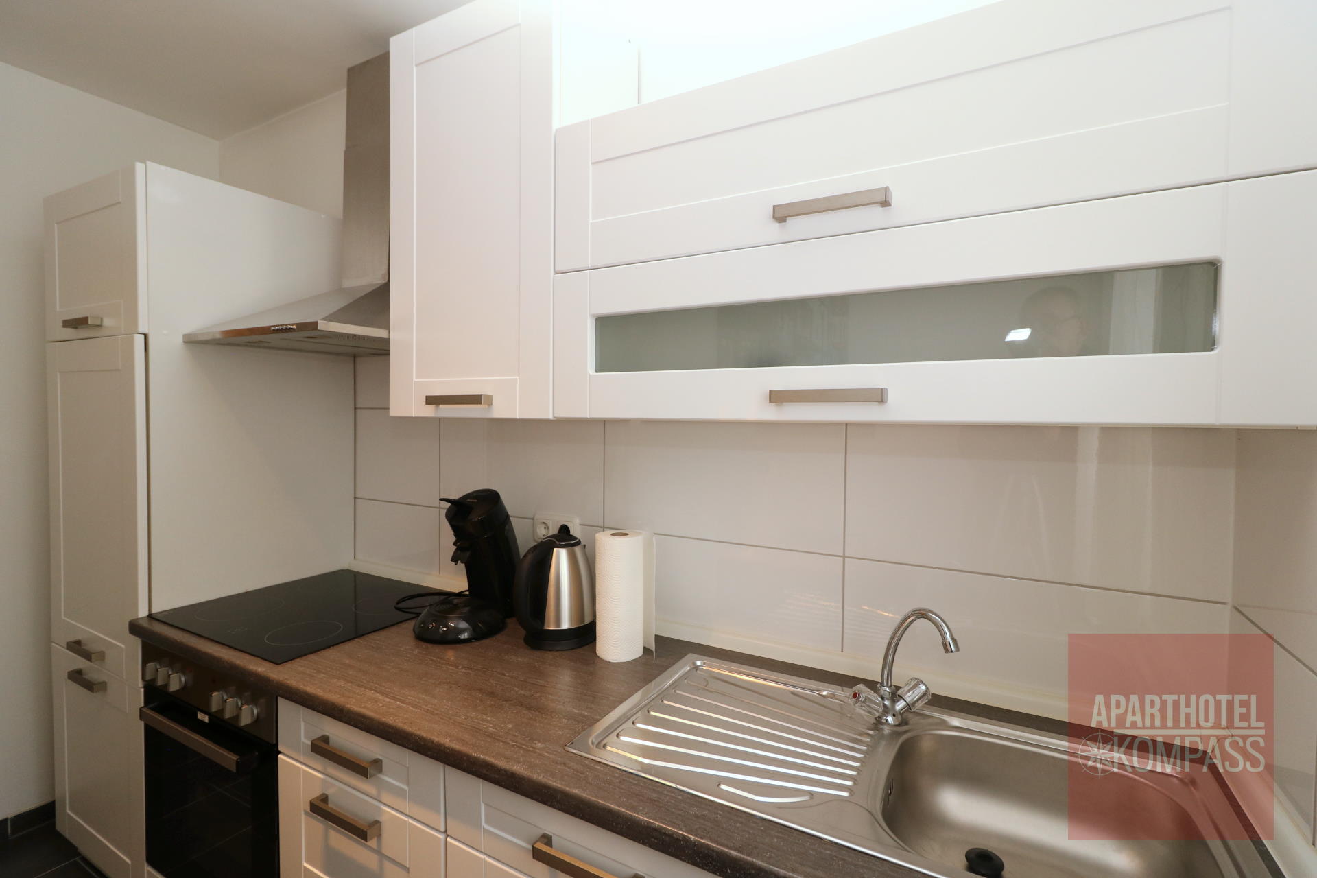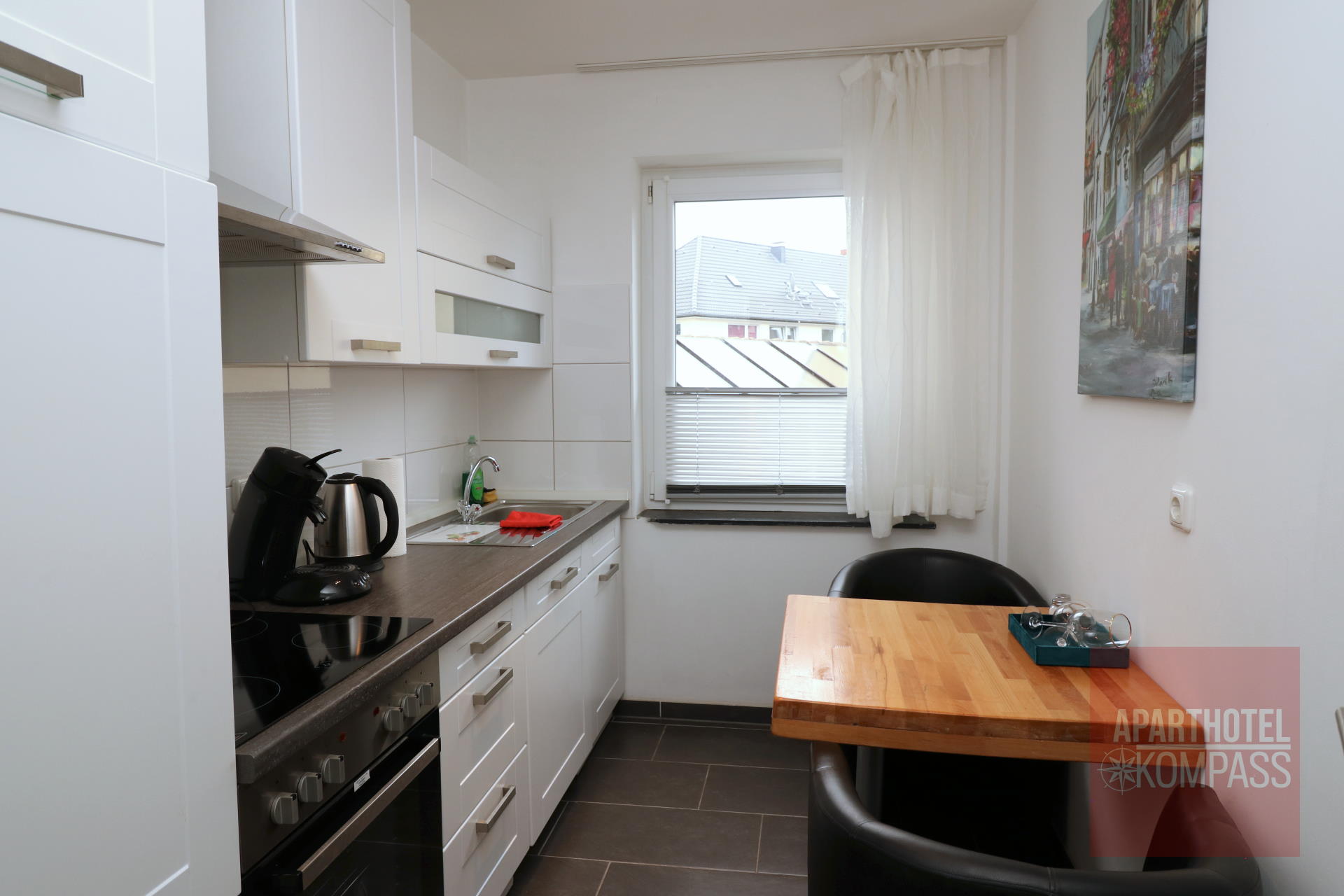 Die Küche verfügt über einen Kühlschrank (3-Sterne-Gefrierfach), Backofen, Ceranfeld, Dunstabzughaube mit Kochfeldbeleuchtung, Spülmaschine, Spüle, Kaffeemaschine, Wasserkocher, Tisch und 2 Stühle. Topfset/Pfanne, Geschirr, Besteck, Tassen und Gläser sind für 4 Personen vorhanden. Bei Buchung für 5 Personen stellen wir Ihnen weiteres Geschirr zur Verfügung.