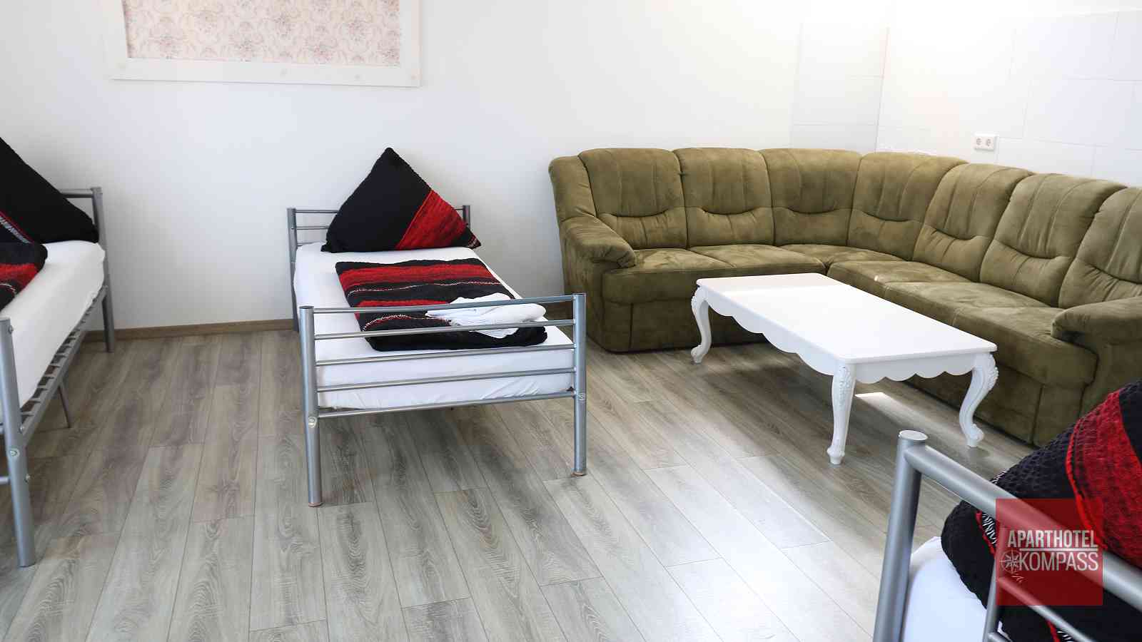 - Wohnraum mit 3 Betten und Sofa mit Schlaffunktion