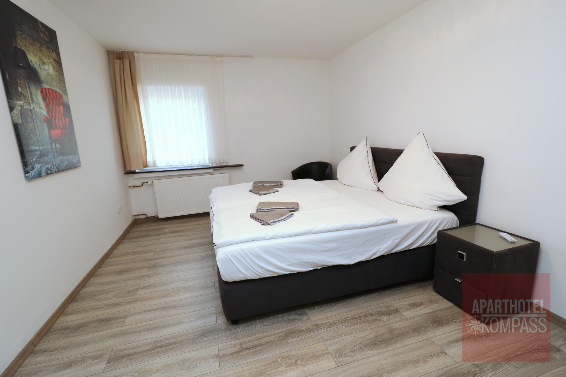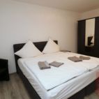 Im Schlafzimmer befindet sich ein Doppelbett, ein 3-türiger Kleiderschrank und 1 Clubsessel.